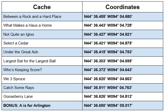 - The 10 caches can be found in ANY order