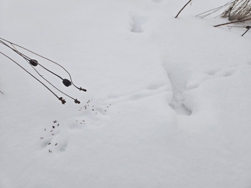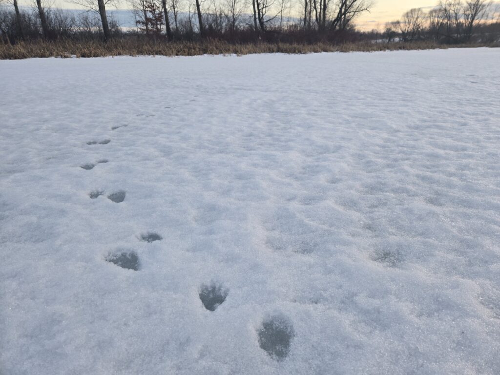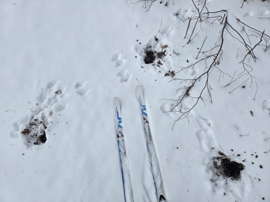 Humans aren’t the only ones that stay busy during winter. Many animals remain active throughout the coldest months of the year, and while not always seen, they do leave behind plenty of tracks that give clues to their every day lives. I recently went for a long ski at Ney and was kept busy spotting the numerous tracks and signs all over the trails. I couldn’t help but stop and examine each one of them!